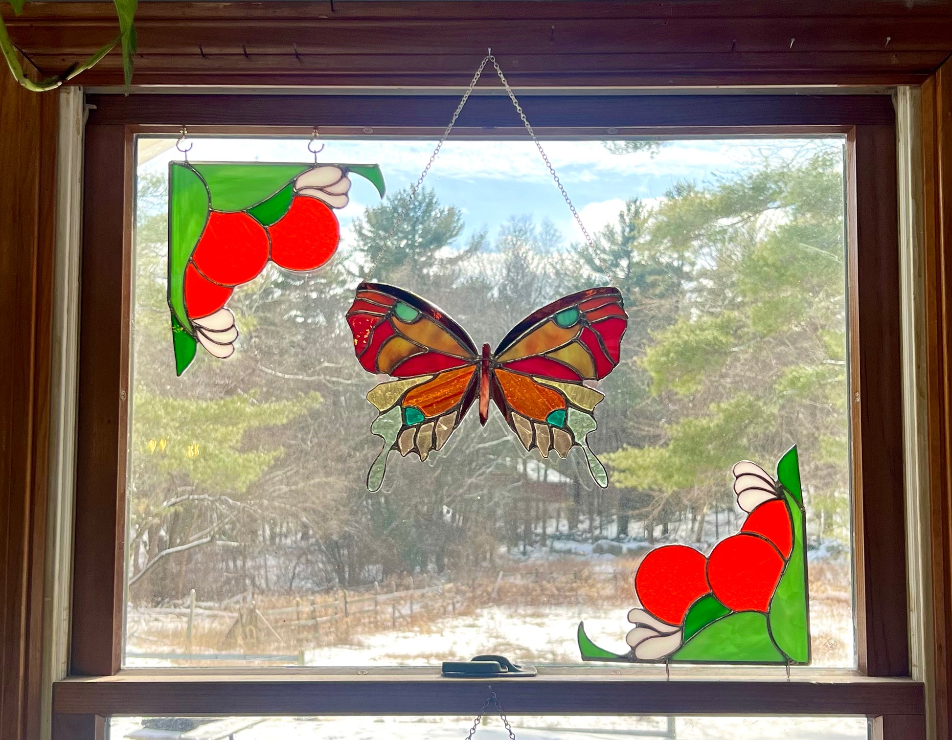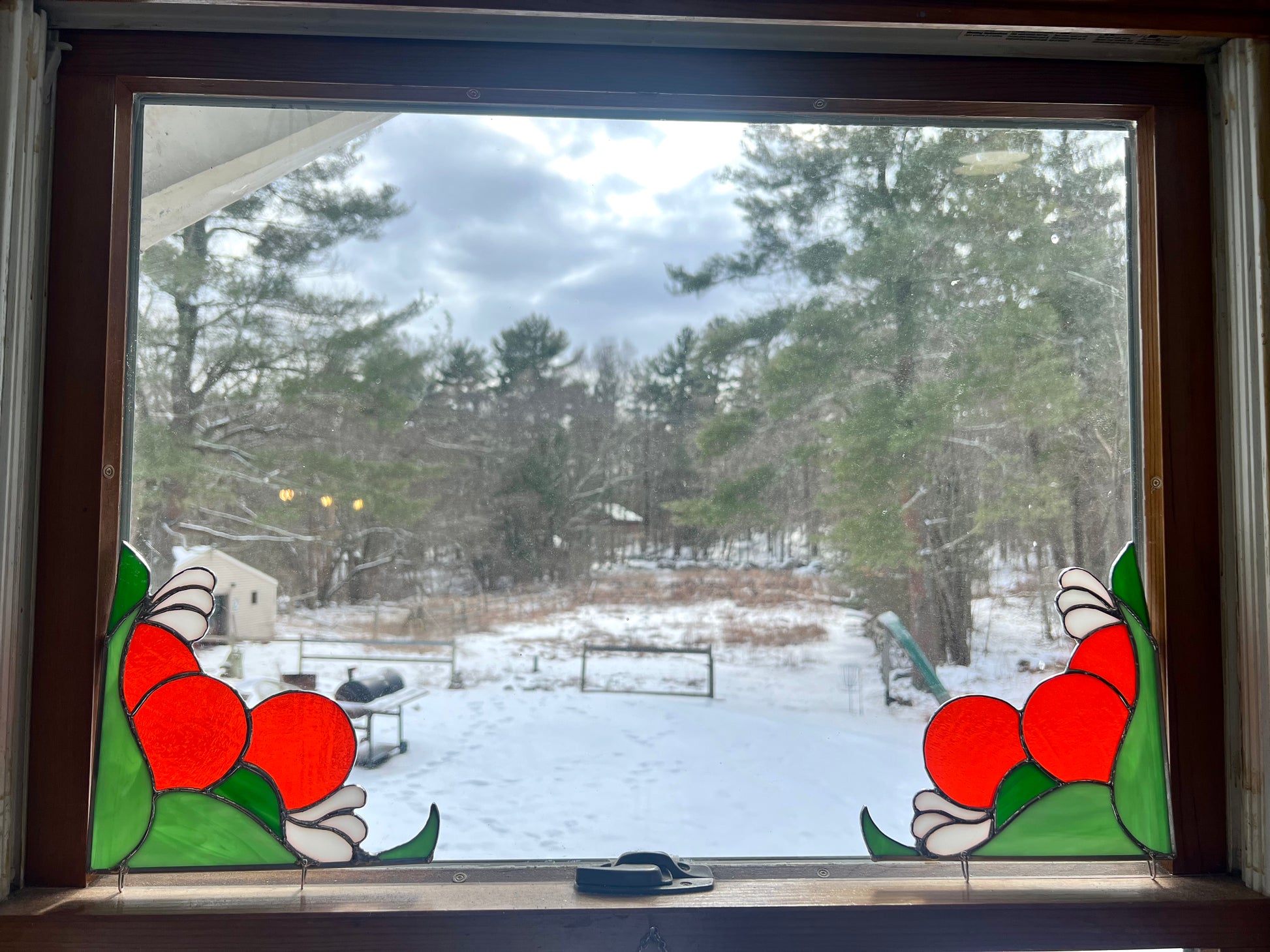 This set of hanging orange blossom corners adds a whimsical touch to your space! Can be hung in windows or any open door frame. They can also be laid across the bottom of a window instead of being hung, or one in a top corner and one in the bottom (see photos)
